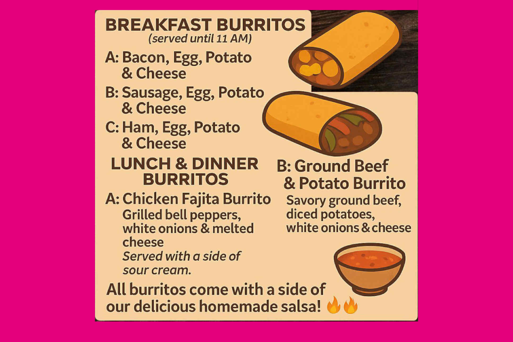 Order Your Fresh, Made with Love Burrito, via Text or Call: